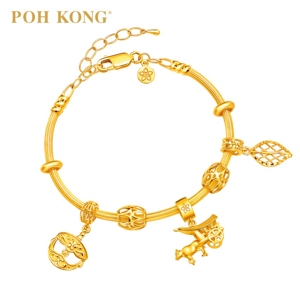 Poh Kong Karya Anggun 916 22k Yellow Gold Charm Bangle Shopee Singapore