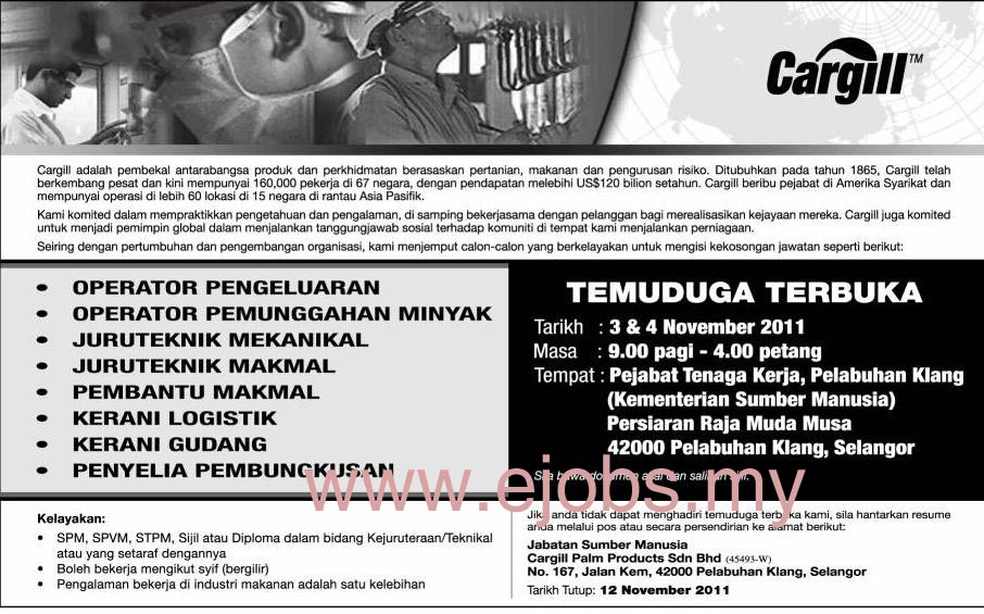 Jawatan Kerja Kosong Job Vacancy At Cargill Palm Products Sdn Bhd