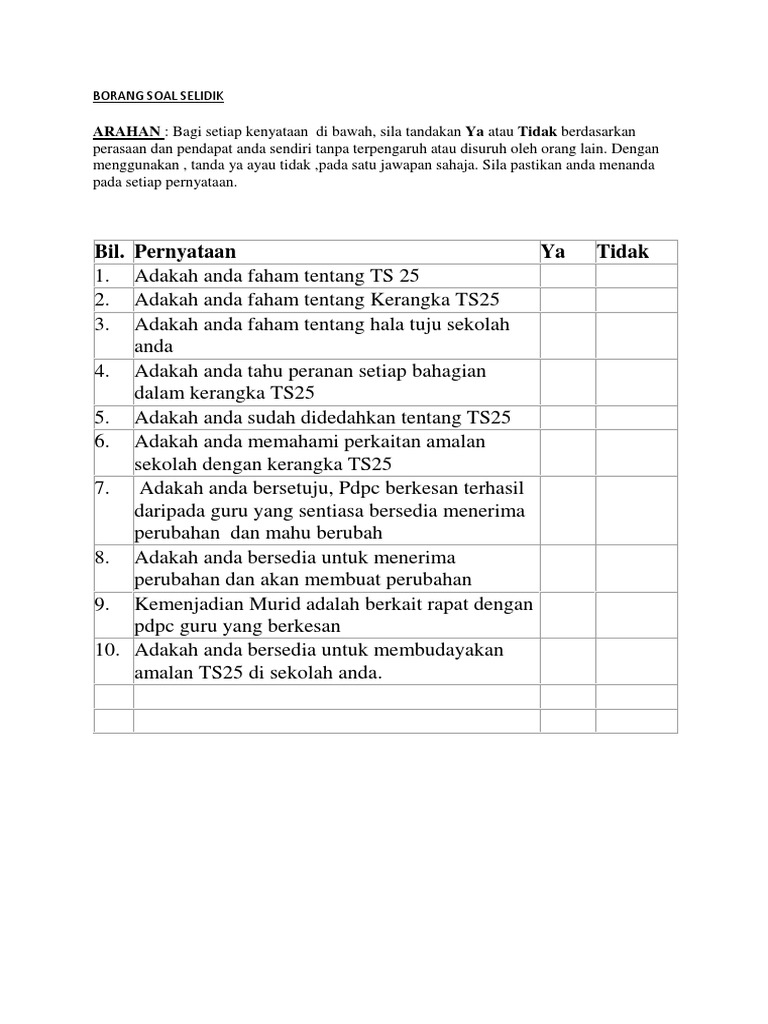 Borang Soal Selidik Ts25 Docx