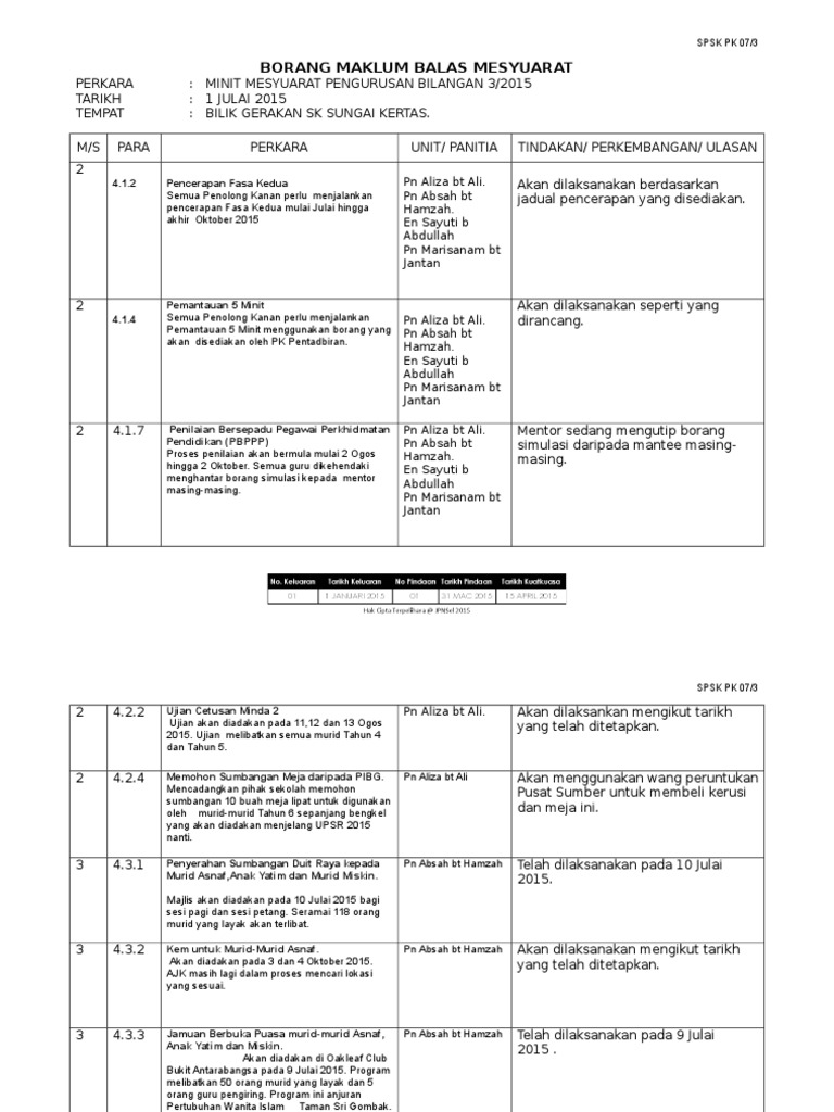 Borang Maklum Balas Mesyuarat 1 2020 Sk Sg Ular Pages 1 9 Text Version Anyflip