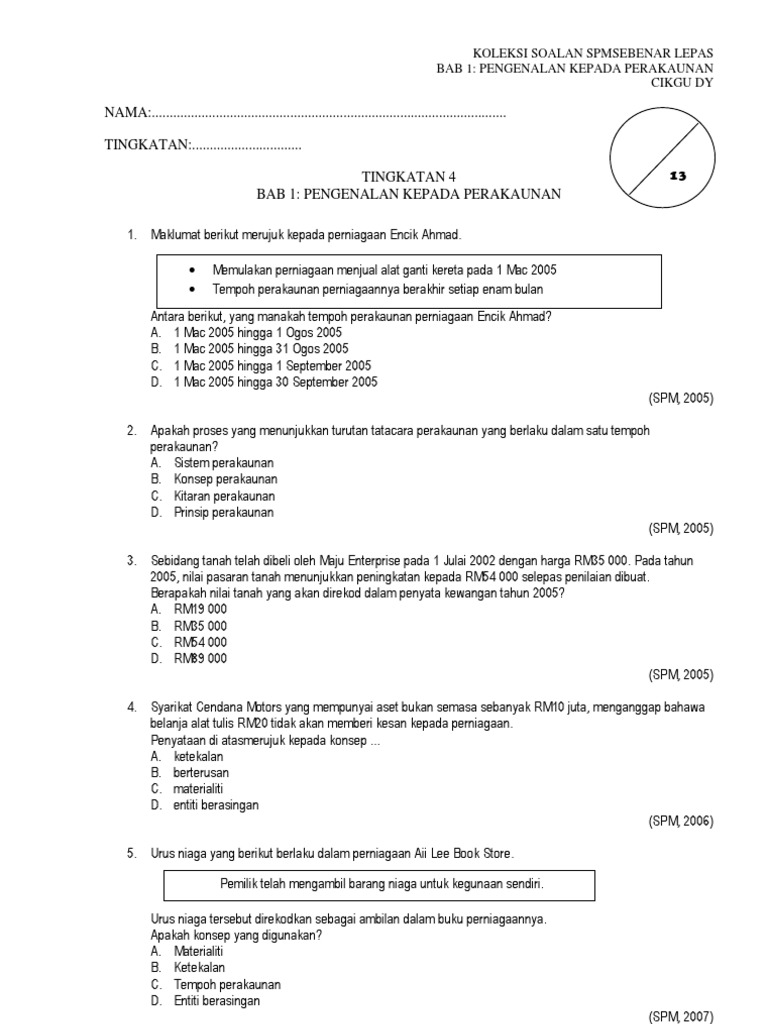 Koleksi Soalan Sebenar Prinsip Perakaunan