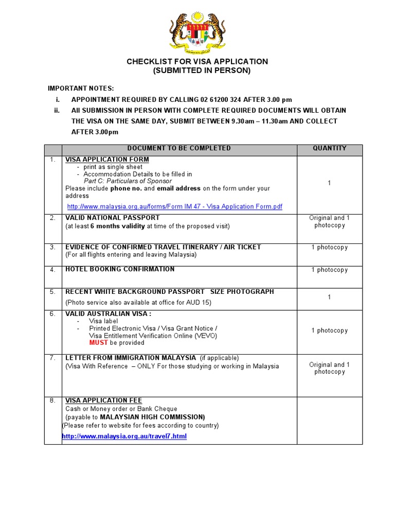 Checklist For Visa App In Person
