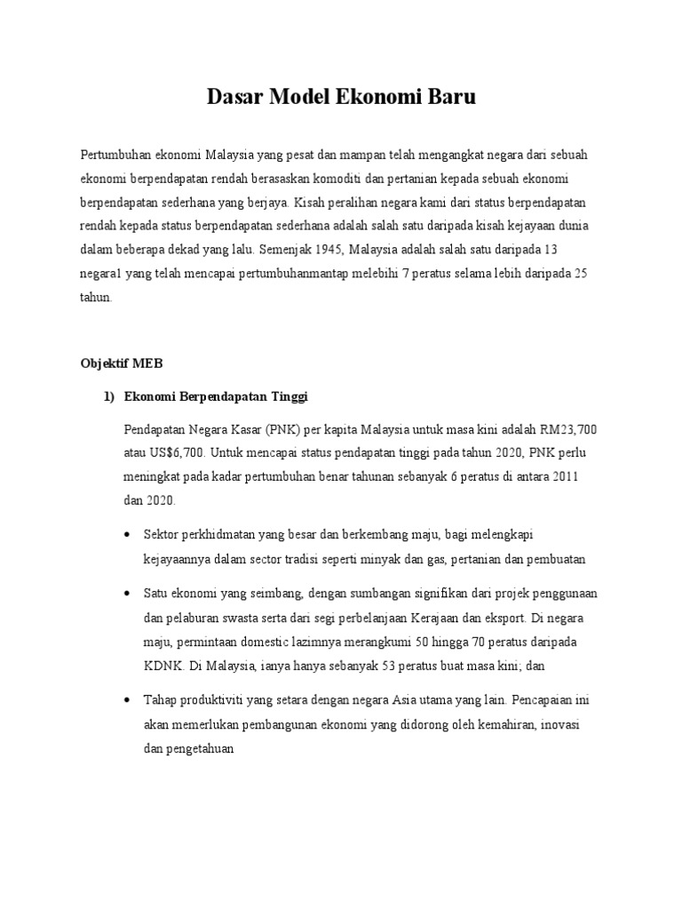 Dasar Model Ekonomi Baru Objektif Meb 1 Ekonomi Berpendapatan Tinggi
