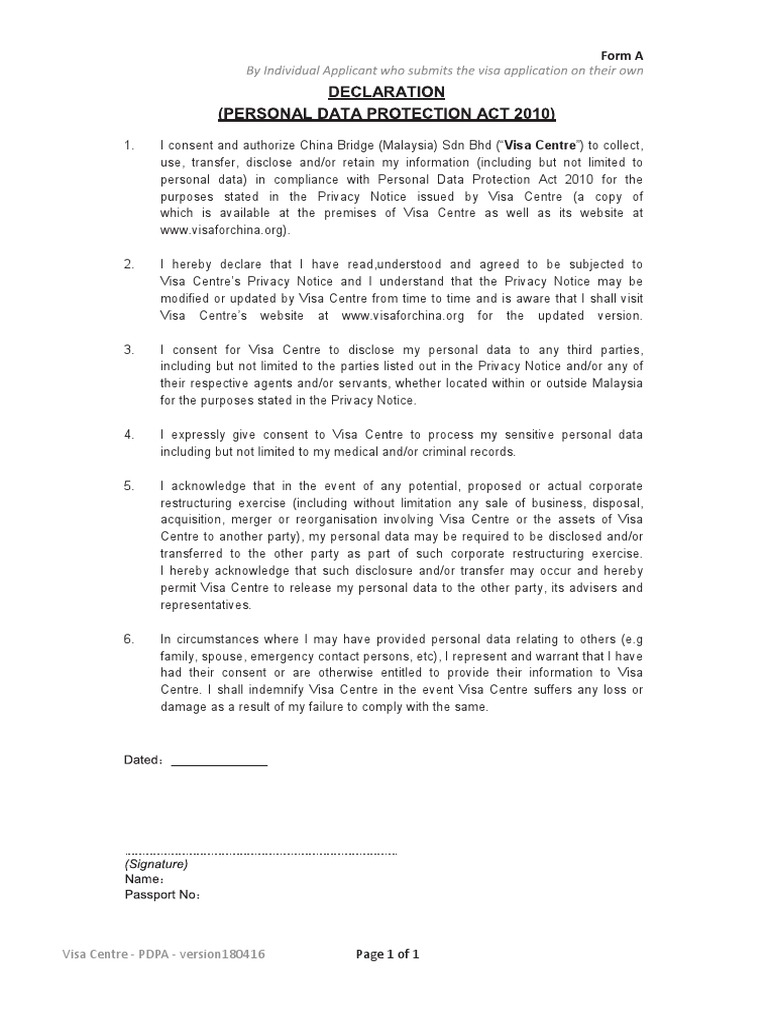 China Visa Pdpa11 Personally Identifiable Information Privacy