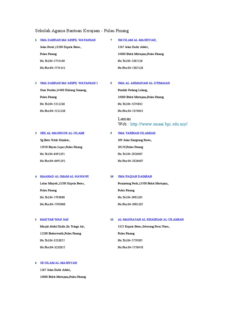 Senarai Sekolah Agama Bantuan Kerajaan Di Pulau Pinang Perokok L