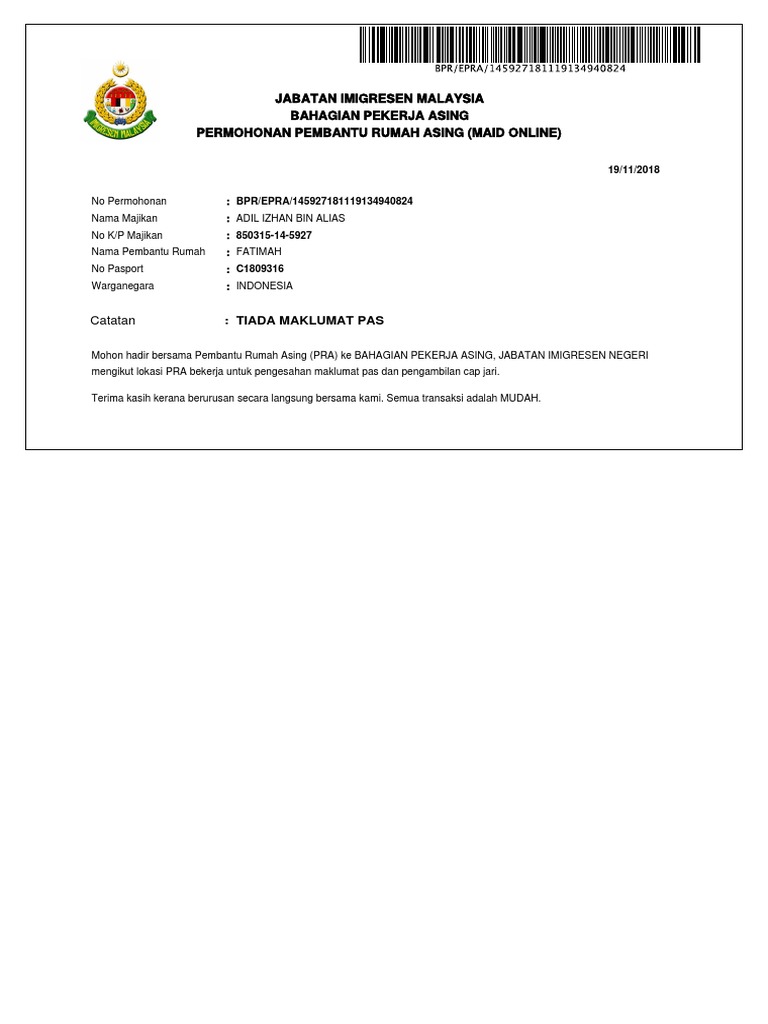 Permohonan Pembantu Rumah Asing Maid Online Permohonan My