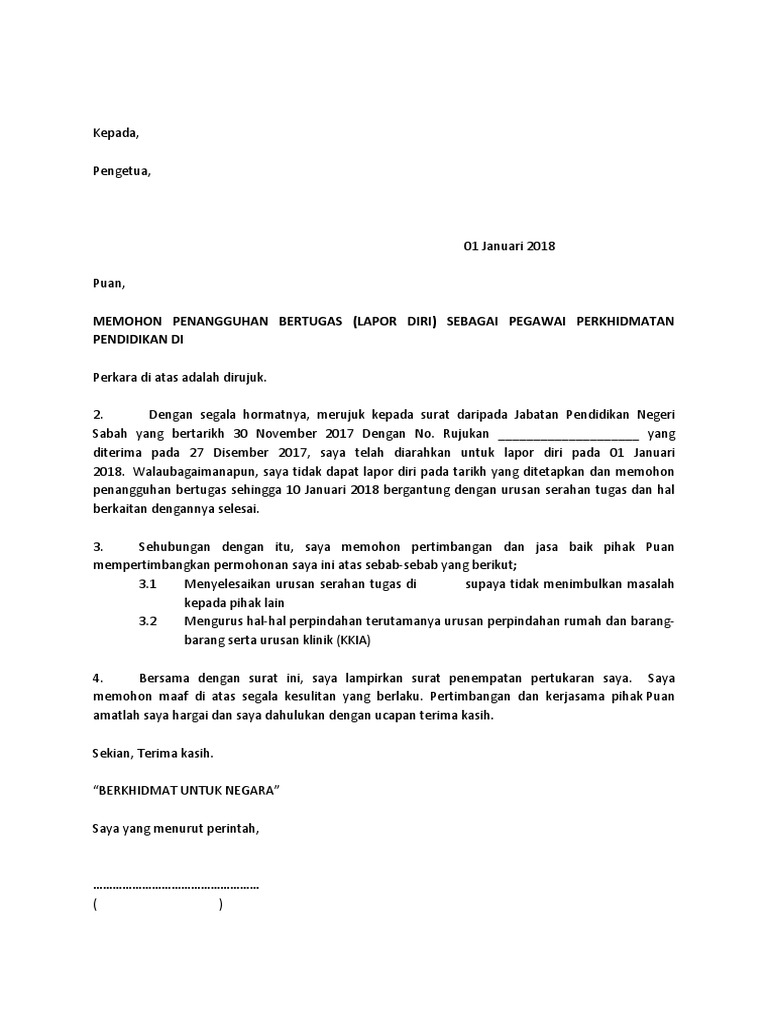 Surat Penagguhan Lapor Diri