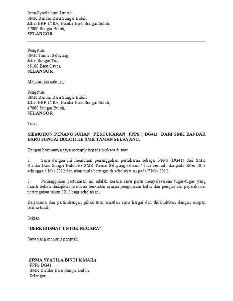 Surat Tangguh Tugas Pertukaran Cute766